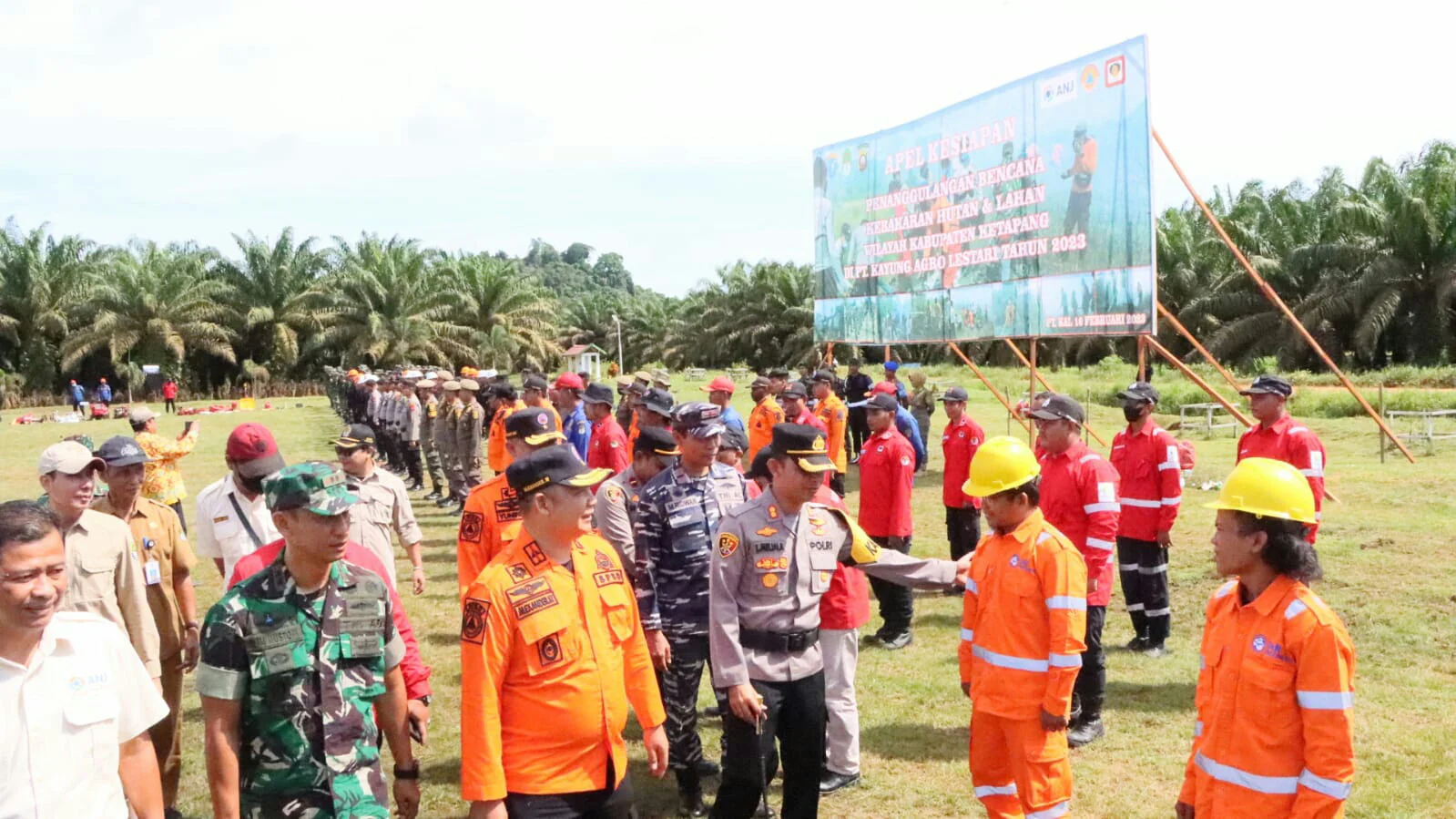 Kapolres Ketapang AKBP Laba Meliala bersama Sekda Ketapang Alexander Wilyo serta Dandim 1203 Ketapang Letkol Imam Mustofa menjadi pimpinan apel gabungan kesiapsiagaan kebakaran hutan dan lahan yang berlangsung di lapangan apel PT Kayung Agro Lestari (KAL) Di Desa Kuala Tolak Kecamatan Matan Hilir Utara Kabupaten Ketapang Kalimantan Barat, Kamis 16 Februari 2023, Pukul 08.00 wib.