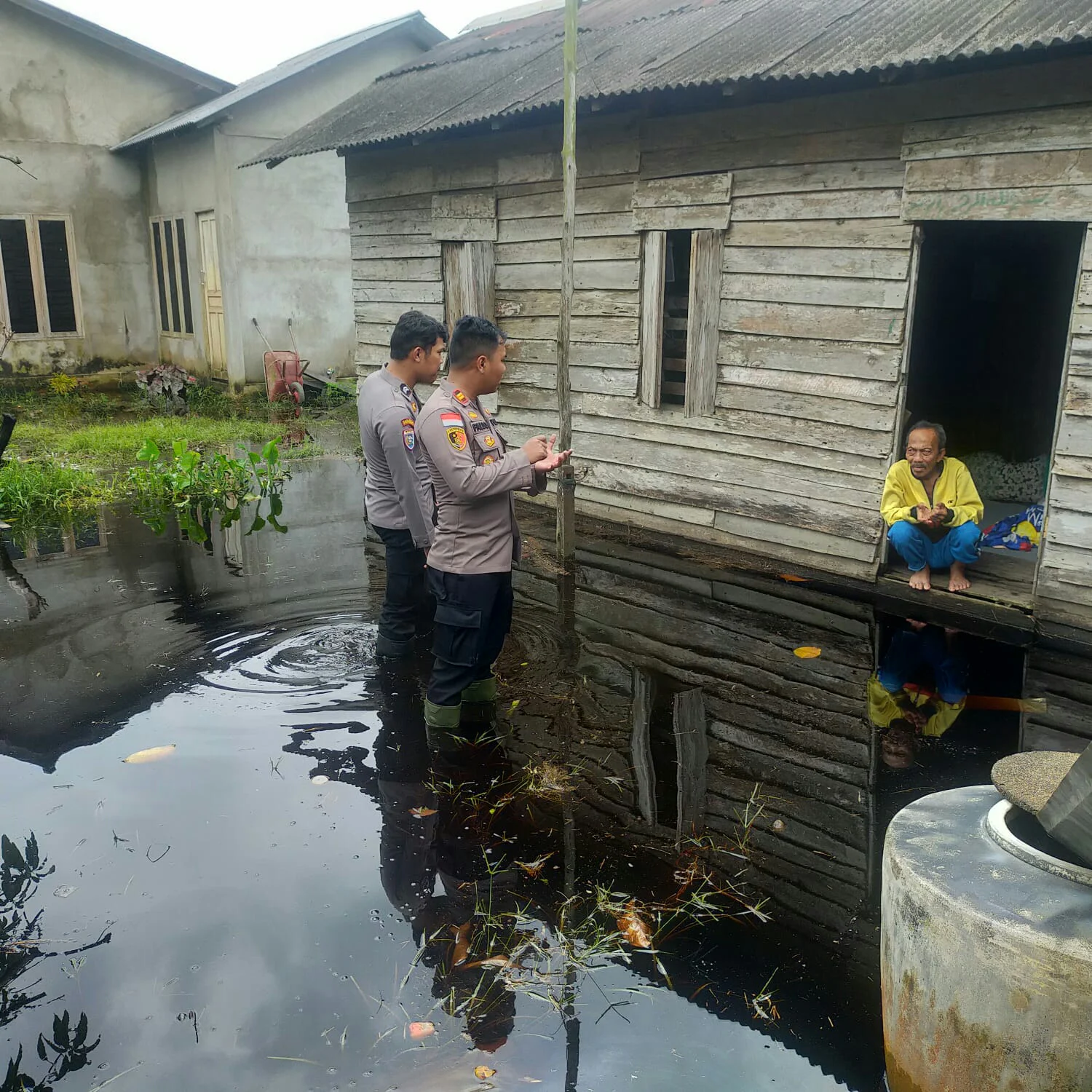 Polsek Sungai Raya melakukan monitoring wilayah yang terdampak banjir rob akibat tingginya permukaan air laut yang terjadi beberapa hari belakangan di lokasi RT. 25 / 26 RW. 08 Dusun Rasau Karya Desa Rasau Jaya Umum Kecamatan Rasau Jaya.