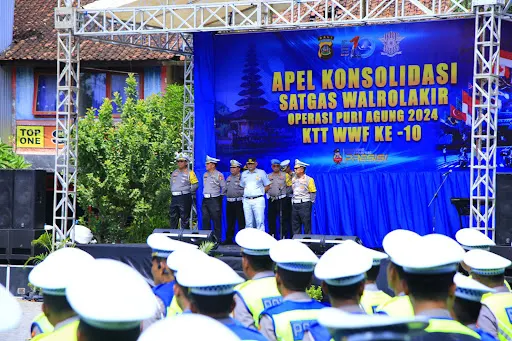Denpasar Bali, Kalimantanpost.online.- Direktorat Lalu Lintas Polda Kateng melaksanakan Apel Konsolidasi Satgas Pamwalrolakir Operasi Puri Agung KTT WWF ke-10 yang dilaksanakan di Lapangan Tragia Posko Ops Puri Agung, Denpasar Bali, Minggu (26/5/2024) sore.
